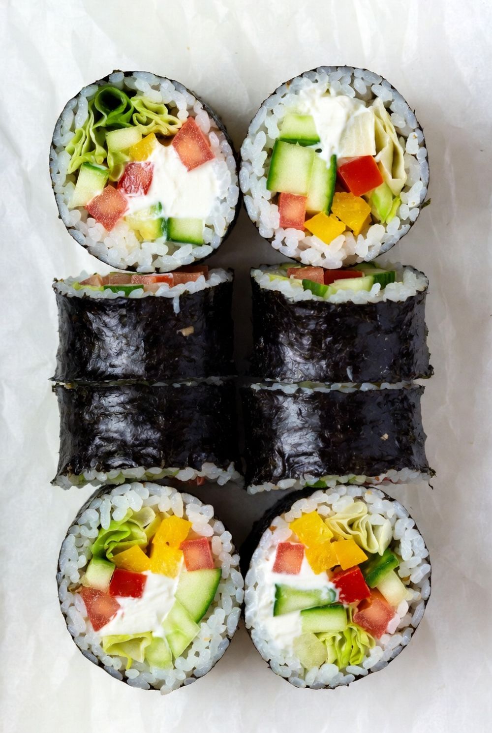 Нори, рис, огурец, помидор, перец болгарский, капуста пекинская